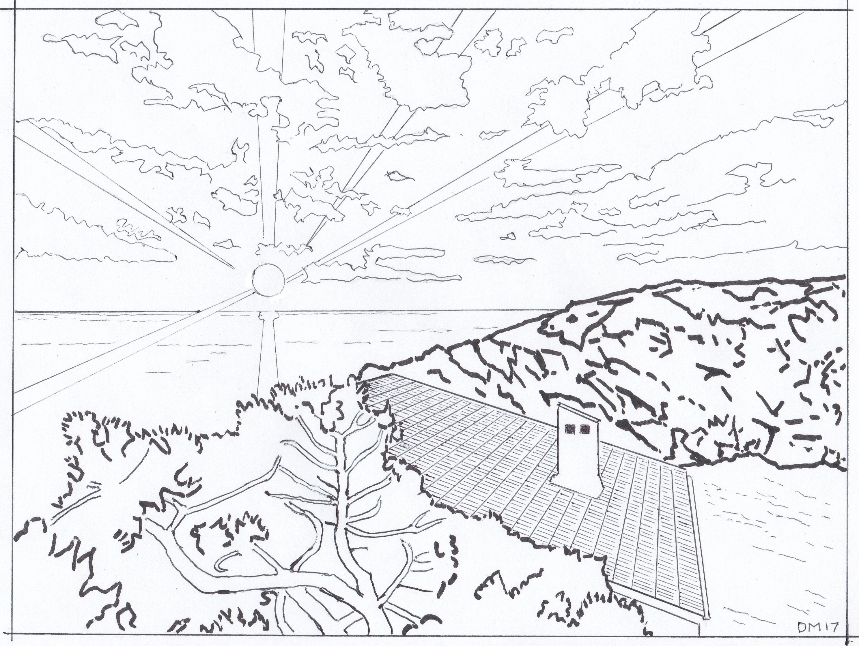 2017 – There is another incarnation of this sketch out there which shows the bay to the right of the villa. A variation on a theme.