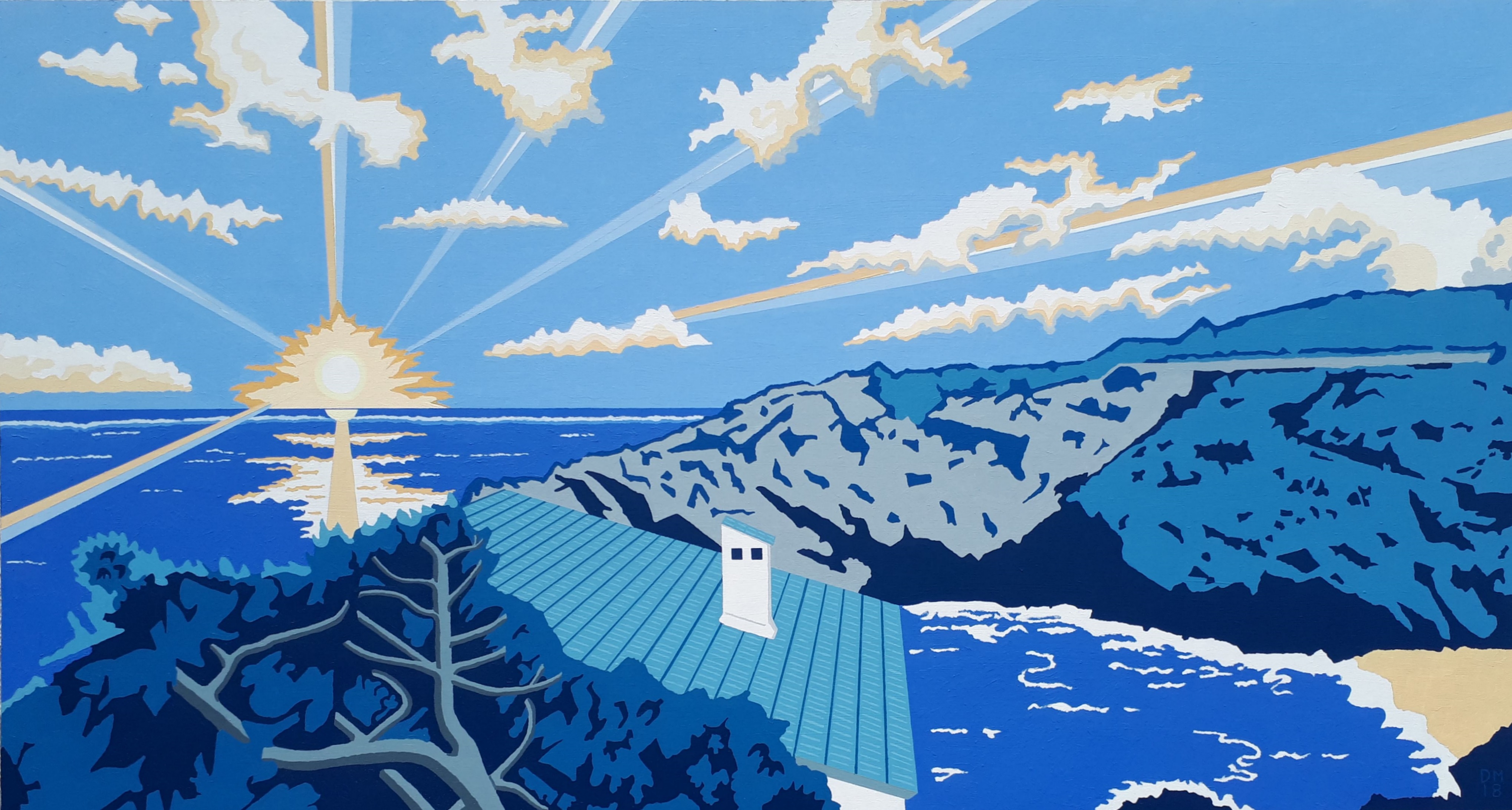 2018 – This was the second of two works commissioned. As part of the commission, I agreed to create pen and ink sketches to provide an idea of the overall composition. Once the clients approved, I create gouache designs before moving on to paint the final works.